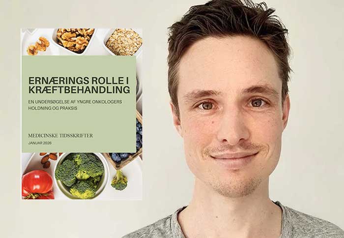 ”Vi er ikke gode nok til at opspore alle, der har et ernæringsproblem. Så vi får nok ikke systematisk opfanget alle med ernæringsproblemer,” siger Troels Dreier Christensen, der er formand for Yngre Onkologer. Til venstre Medicinske Tidsskrifters nye rapport om ernæringens rolle i kræftbehandlingen.